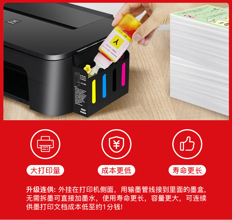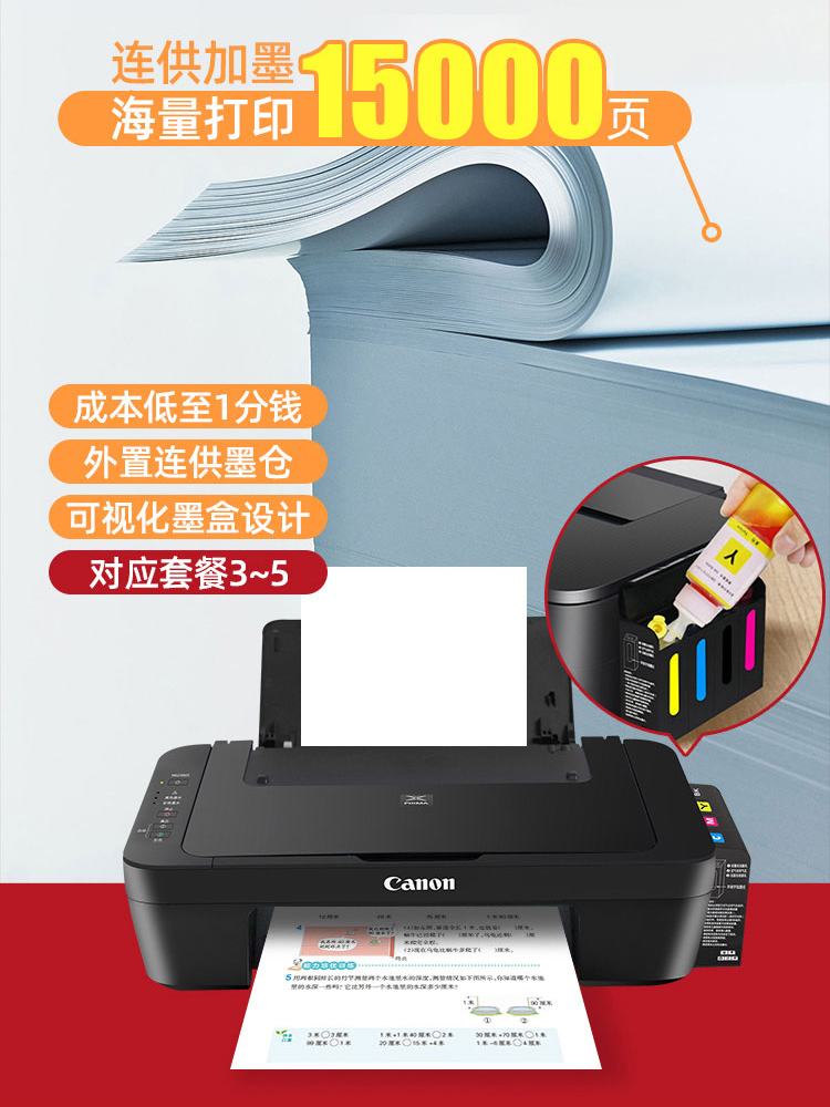 • 佳能ts3480彩色打印机复印一体机循环加墨复印机喷墨家庭a4办公扫描手机无线WiFi