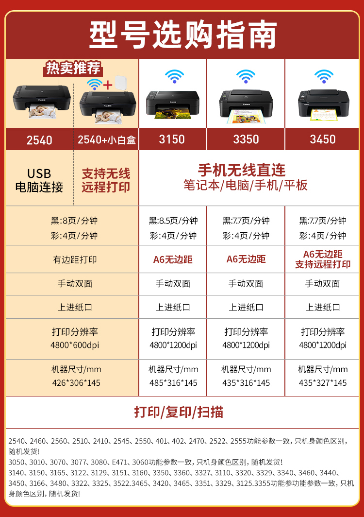 佳能2580彩色打印机家用小型复印一体机喷墨无线学生连供照片办公